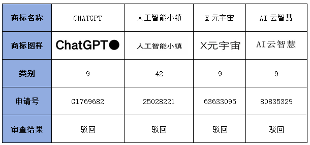 在人工智能領(lǐng)域,審查實踐中被認定缺乏顯著性而未獲注冊的商標,具體表現(xiàn)為直接使用或簡單組合行業(yè)通用詞匯,這些名稱被同業(yè)經(jīng)營者普遍用于描述自身產(chǎn)品或服務(wù)。此類標志無法幫助相關(guān)公眾區(qū)分商品或服務(wù)的來源,反而會被視為對技術(shù)功能或內(nèi)容的直接描述,具有明顯的公共屬性,若被一家獨占將損害公平競爭,因此依法不得作為商標注冊。