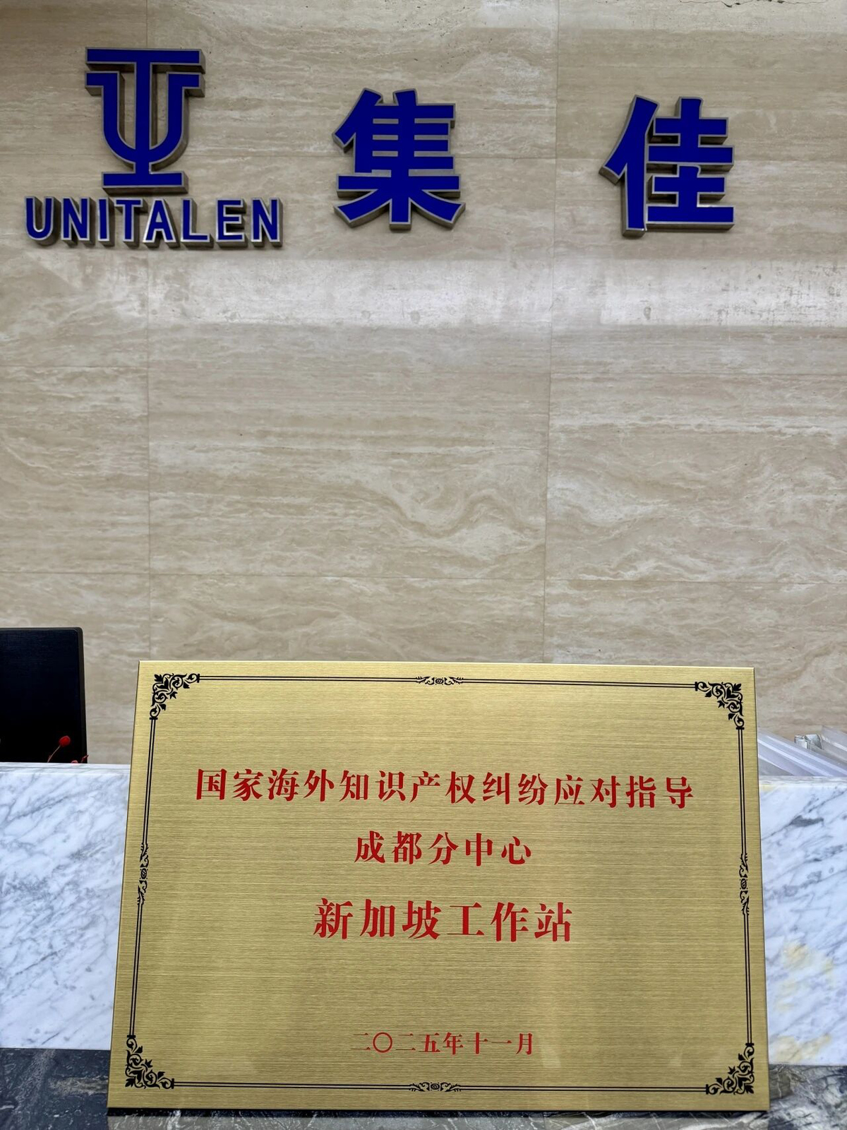 Administration for Market Regulation of Chengdu Conducted Specialized Training and Presented Unitalen with Signage, Designating Unitalen as "Singapore Workstation of the Chengdu Sub-Center of the Overseas Intellectual Property Dispute Response Guidance Center of China"
